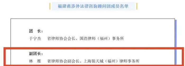 錦天城福州分所律師成功入選福建省涉外法律咨詢顧問團 福州律師資訊發(fā)布者 福州律師網2025年6月23日近日,省司法廳和省律師協會共同成立“福建省涉外法律咨詢顧問團”,集合全省100余名優(yōu)秀涉外律師,發(fā)揮職能優(yōu)勢和專業(yè)水平,詳情