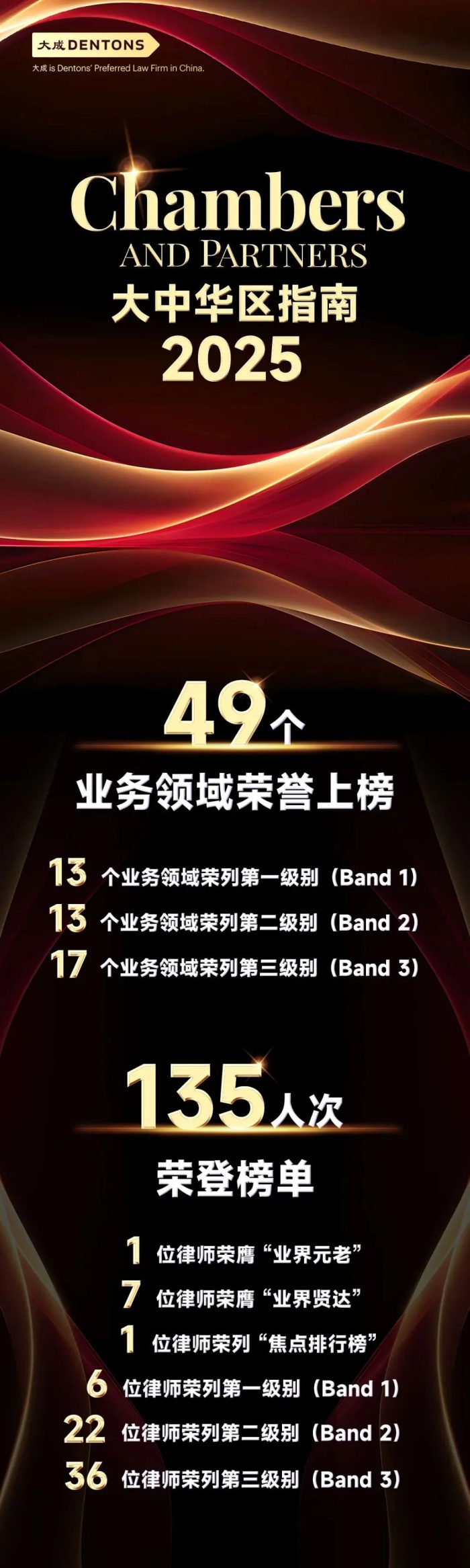大成福州、廈門辦公室兩名律師榮登《錢伯斯大中華區(qū)法律指南2025》榜單