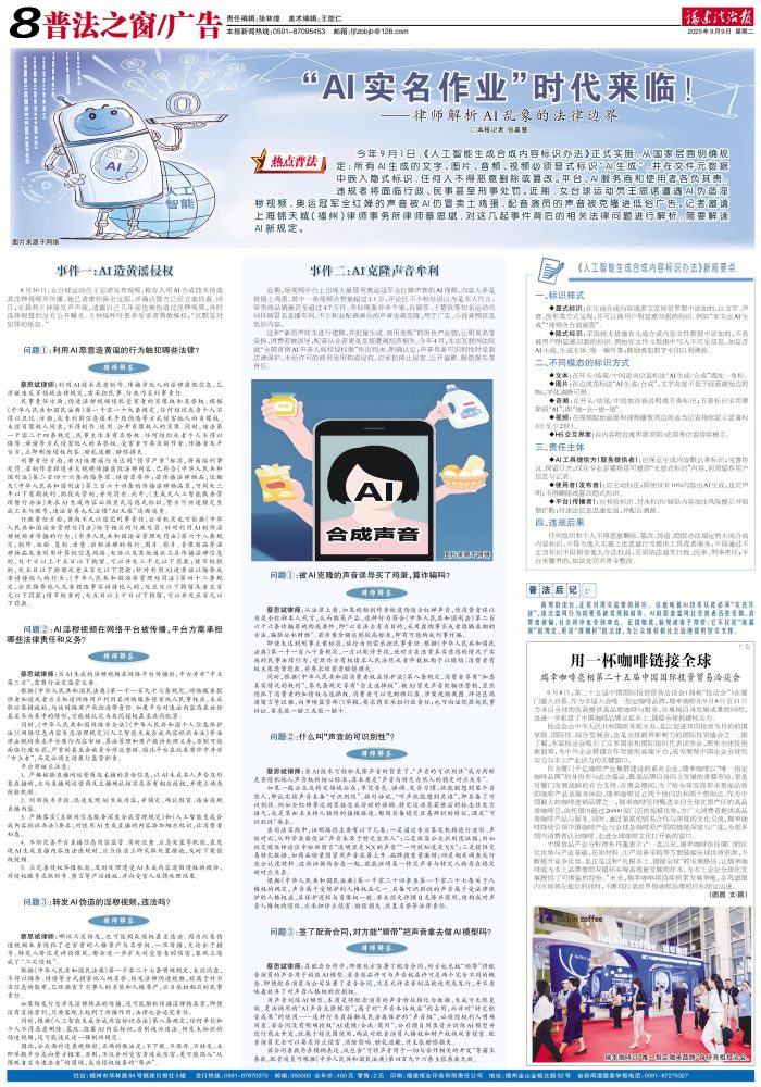 福州蔡思斌律師接受《福建法治報(bào)》專訪,解讀AI亂象的法律邊界 律師展示, 福州律師資訊發(fā)布者 福州律師網(wǎng)2025年9月9日2025年9月1日,《人工智能生成合成內(nèi)容標(biāo)識(shí)辦法》正式實(shí)施,從國(guó)家層面明確規(guī)定:所有AI生成的文字、圖片、音頻、視頻必詳情