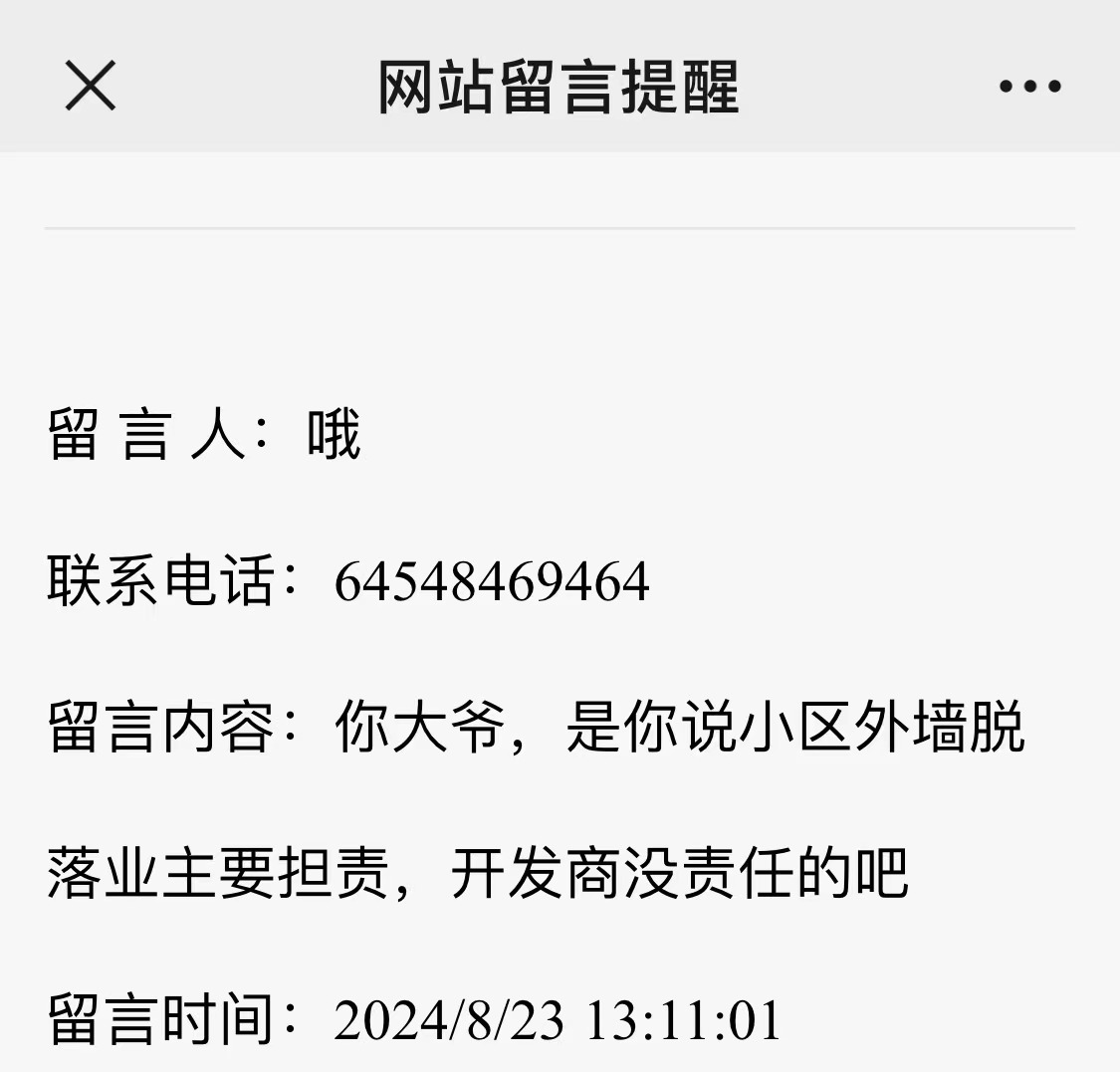 清晨6點(diǎn),蔡律師接聽了一個(gè)電話,電話里的人上來就罵蔡律師,今天上午又有電話打到律所前臺(tái)辱罵蔡律師“狗屎”什么。而今天下午13點(diǎn),又有人在蔡律師官網(wǎng)上留言“你大爺,是你說小區(qū)外墻脫落業(yè)主要擔(dān)責(zé),開發(fā)商沒責(zé)任的吧?!蹦敲床搪蓭熅烤故亲隽耸裁词虑?,竟然引得如此多人來怒罵蔡律師呢?