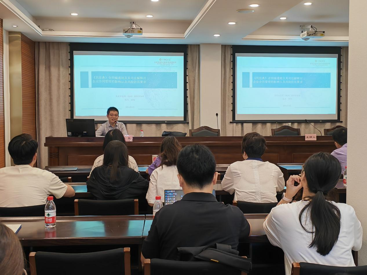 盈科福州律師受邀分享《<民法典>合同編通則及其司法解釋對(duì)企業(yè)合同管理的影響以及風(fēng)險(xiǎn)防范要求》分類: 福州律師資訊2024年9月13日標(biāo)簽: 福州律師福州律師事務(wù)所 福州律師資訊 2024年9月12日,北京市盈科(福州)律師事務(wù)所(以下簡(jiǎn)稱“盈科福州”)陳東律師團(tuán)隊(duì)受福州國(guó)有資本投資運(yùn)營(yíng)集團(tuán)有限公司邀請(qǐng),為該公司的員工作《<民法典>合同編通則及其司法解釋對(duì)企業(yè)合同管理的影響以及風(fēng)險(xiǎn)防范要求》主題分享。 陳東律師從合同的成立與生效、合同的有效、無(wú)效及可撤銷、合同的終止與解除等幾組法律概念著手,深入淺出地向公司員工講解了一份合同的始終,進(jìn)而從合同的訂立與合同的履行兩個(gè)階段分別講解合規(guī)要點(diǎn)與風(fēng)險(xiǎn)應(yīng)對(duì)。他圍繞《民法典》合同編的基本原則和制度框架,結(jié)合實(shí)際案例,詳細(xì)解讀《民法典》合同編及最新司法解釋的具體條款和適用情形,具體分析司法解釋在實(shí)際運(yùn)用中的重點(diǎn)和難點(diǎn),以提高公司員工的合同管理能力與風(fēng)險(xiǎn)應(yīng)對(duì)意識(shí)。 馬楠律師從合同的管理流程與管理制度角度出發(fā),講解了合同管理的實(shí)際流程操作要點(diǎn),并分享相關(guān)案例,加深公司人員對(duì)合同管理的風(fēng)險(xiǎn)認(rèn)知。 主題分享結(jié)束后,公司人員提出了一些在合同管理方面遇到的實(shí)際問(wèn)題,與陳東律師團(tuán)隊(duì)進(jìn)行了深度的溝通與交流。 未來(lái),盈科福州將繼續(xù)秉承“誠(chéng)信、卓越、創(chuàng)新、開(kāi)放、共享”的理念,深耕法律實(shí)務(wù)的沃土,致力于為企業(yè)提升風(fēng)險(xiǎn)防范意識(shí),提供更加卓越、高效的法律服務(wù)。 來(lái)源:福州盈科律所 分享此文文章導(dǎo)航上一個(gè)上一篇文章錦天城福州律師事務(wù)所動(dòng)態(tài) | “2024年青年律師講壇”繼續(xù)開(kāi)講之二下一個(gè)下一篇文章福州律師整理:人民法院案例庫(kù)勞動(dòng)爭(zhēng)議案例匯總(二)相關(guān)文章福州律協(xié)舉辦“低空經(jīng)濟(jì)駛向未來(lái)——法律實(shí)踐與經(jīng)驗(yàn)分享”講座2025年12月5日福州律協(xié)“12·4”國(guó)家憲法日主題宣傳活動(dòng)圓滿舉行2025年12月5日福州律師代表隊(duì)在第四屆福建律師籃球賽暨第二屆啦啦操比賽中斬獲佳績(jī)2025年12月4日福州律協(xié)會(huì)員事務(wù)管理工作委員會(huì)召開(kāi)2025年度工作總結(jié)暨律師執(zhí)業(yè)年度考核工作培訓(xùn)會(huì)議2025年12月4日《人民法院報(bào)》頭版刊發(fā)錦天城福州律師事務(wù)所律師專題受訪報(bào)道2025年12月1日福州律協(xié)教育和培訓(xùn)工作委員會(huì)召開(kāi)2025年第三次全體會(huì)議2025年12月1日