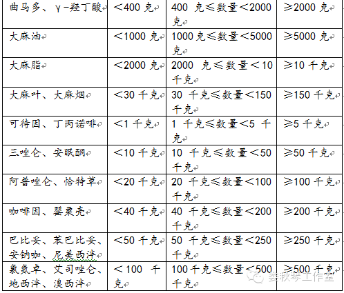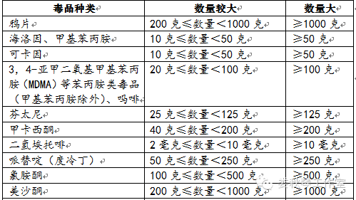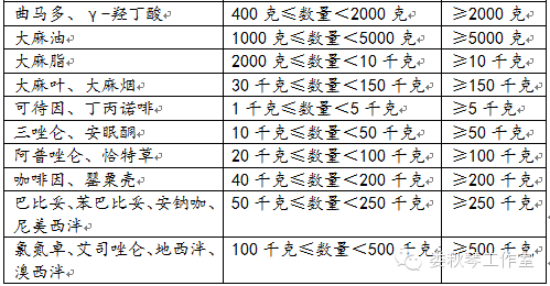 毒品犯罪數(shù)量標(biāo)準(zhǔn)一覽表(根據(jù)2016年4月11日新司法解釋制定)