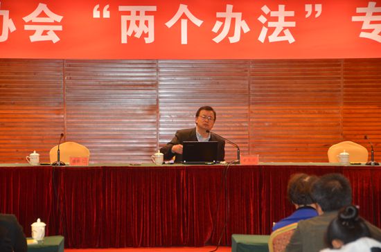 ??? 黃太云教授圍繞著新一輪司法體制改革與律師執(zhí)業(yè)關(guān)系密切的改革任務(wù)、保障律師執(zhí)業(yè)權(quán)益、改善律師執(zhí)業(yè)環(huán)境及加強(qiáng)新時(shí)期律師執(zhí)業(yè)管理等課題進(jìn)行了深刻闡述、詳細(xì)講解。同時(shí),他還深入分析律師隊(duì)伍管理存在的突出問題,并對“兩個(gè)辦法”進(jìn)行解讀。