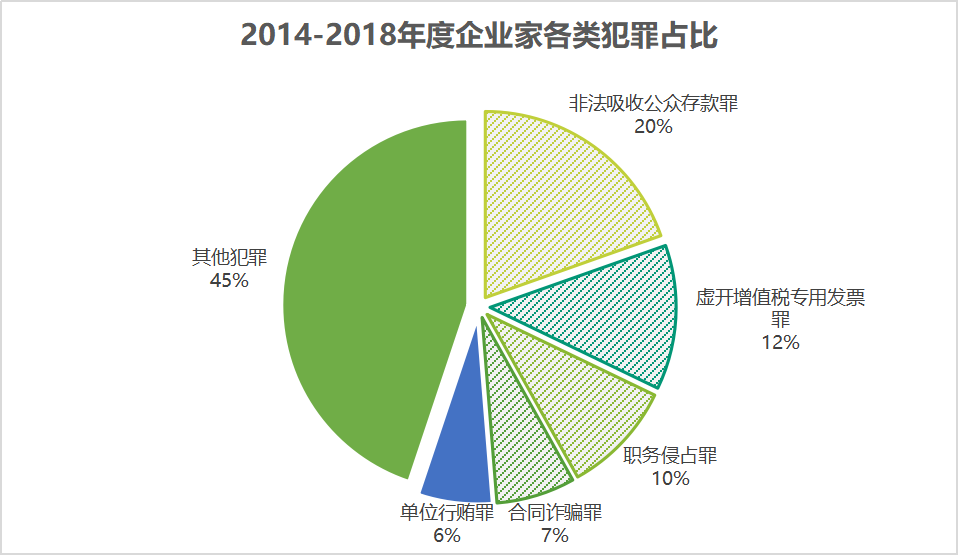 數(shù)據(jù)顯示民營企業(yè)家觸犯頻次最高的五大罪名依次為:非法吸收公眾存款罪(1494次)、虛開增值稅專用發(fā)票罪(955次)、職務(wù)侵占罪(744次)、合同詐騙罪(520次)以及單位行賄罪(488次)。這五大罪名占五年來民營企業(yè)家犯罪頻次總數(shù)的50%以上,“暴風(fēng)集團(tuán)”實際控制人馮鑫也被推測因涉嫌行賄罪而被采取強(qiáng)制措施??梢钥闯?民營企業(yè)家面臨的刑事風(fēng)險與外部營商環(huán)境具有更為密切的關(guān)聯(lián)性,集中表現(xiàn)為以保護(hù)市場管理秩序為目的的“破壞社會主義市場經(jīng)濟(jì)秩序罪”。