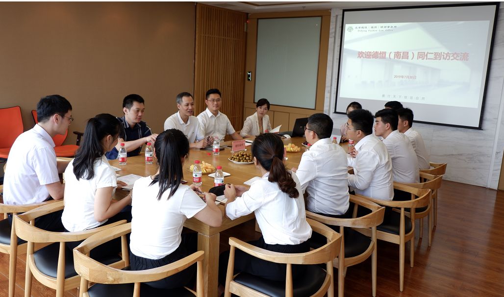 2019年7月30日,德恒南昌黨支部書記王景律師、合伙人羅元律師攜德恒南昌法商團隊共十人到訪德恒福州。德恒福州高級顧問涂育誠、張輝律師、鄭珍清律師、丁文輝律師、姚楊毅律師及運營總監(jiān)謝蘭蘭女士參加接待,對來賓表示熱烈歡迎。雙方在親切、友好的氛圍中舉行了座談會。