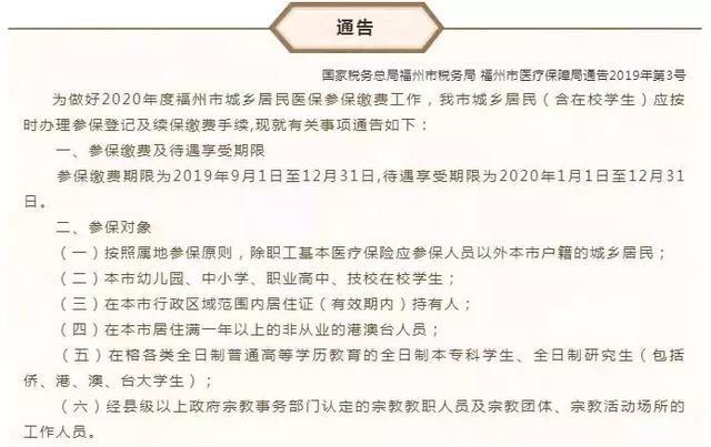 2020年度福州市城鄉(xiāng)居民醫(yī)保參保繳費工作下月啟動,繳費標準為每人270元。