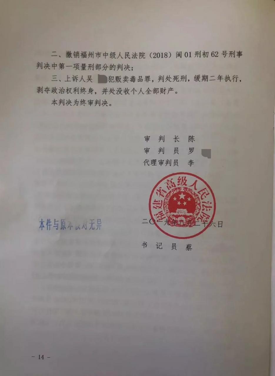 昨天收到一份福建省高院的判決書,我經(jīng)手辦理的一起販毒二審案,從一審死刑改判為死刑,緩期二年執(zhí)行,等于后續(xù)基本上不會(huì)被執(zhí)行死刑了。當(dāng)事人四個(gè)子女聽(tīng)了無(wú)比激動(dòng)、非常開(kāi)心,我也是很喜悅的。畢竟一個(gè)活生生的人可以不被執(zhí)行死刑,雖然該64歲的當(dāng)事人其可能最終會(huì)老死于獄中,但這至少讓他的孩子還有個(gè)念想,還可以去探望見(jiàn)面的,畢竟父母在,感覺(jué)和死神之間還隔著一個(gè)父母,距離挺遠(yuǎn)的。