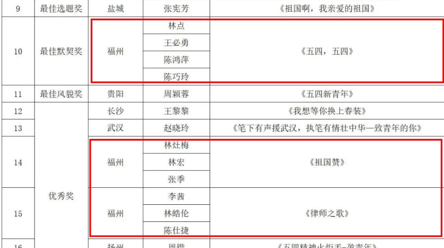 5月13日,<盈青年,新視界>五·四青年節(jié)詩歌朗誦比賽成功舉辦。? 本次演講比賽盈科福州分所共送選五組參賽作品,其中,《五四,五四》榮獲最佳默契獎,《祖國贊》、《律師之歌》榮獲優(yōu)秀獎。