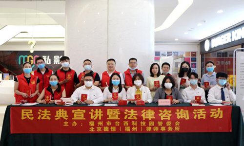 (二)普法宣講,送法惠及大眾。為更好地讓民法典從文本走向社會大眾的生活,福州律師以法律顧問、專題講座、現(xiàn)場咨詢等多種形式,擴(kuò)大民法典宣傳深度與廣度,真正實(shí)現(xiàn)民法典全覆蓋式宣講。福建豪誠、上海蘭迪(福州)等律師事務(wù)所應(yīng)邀為福州市三中、福建省工程學(xué)院等多家學(xué)校的教職工開展民法典解讀專題講座;福建建達(dá)(馬尾)、嵐毅、寬達(dá)等律師事務(wù)所送民法典進(jìn)鄉(xiāng)村;北京德恒(福州)、福建名仕、瀛榕等律師事務(wù)所在社區(qū)街道擺點(diǎn),為居民發(fā)放民法典宣傳手冊;北京中銀(福州)、福建閩君等律師事務(wù)所送民法典進(jìn)軍營;福建信得、元一、坤廣等律師事務(wù)所為馬尾區(qū)工商聯(lián)、新階聯(lián)、莆田商會等社會組織舉辦民法典亮點(diǎn)講座;北京德和衡(福州)、福建拓維、君立等律師事務(wù)所為海峽銀行總行、福州文化旅游投資集團(tuán)有限公司、福建省鐵路建設(shè)、長源紡織有限公司等大型國有企業(yè)及民營企業(yè)的員工宣講民法典。