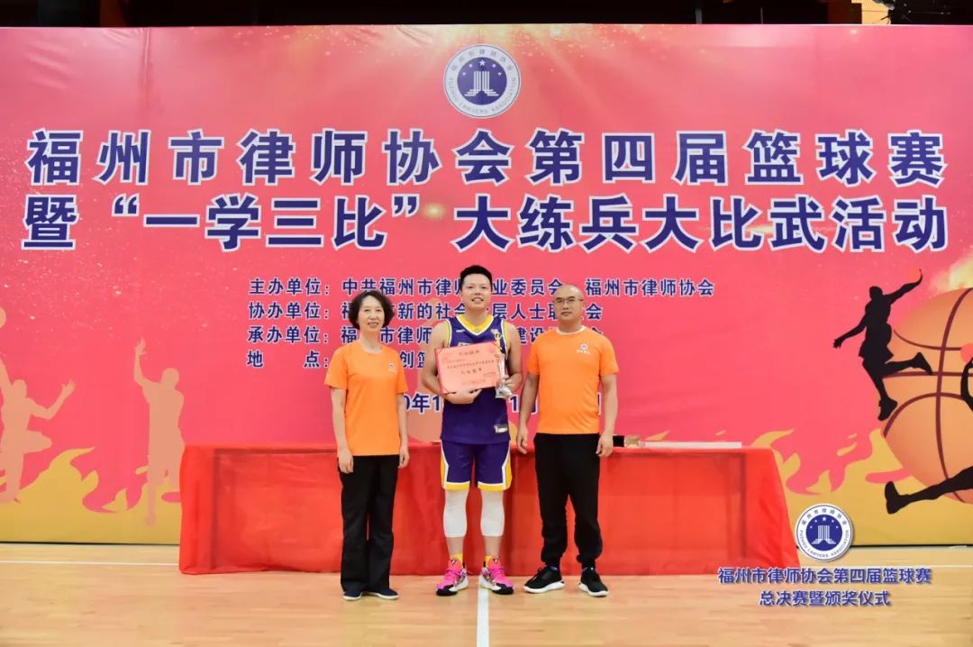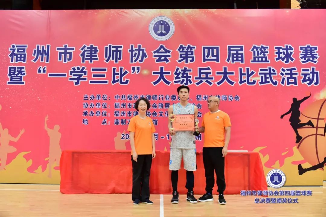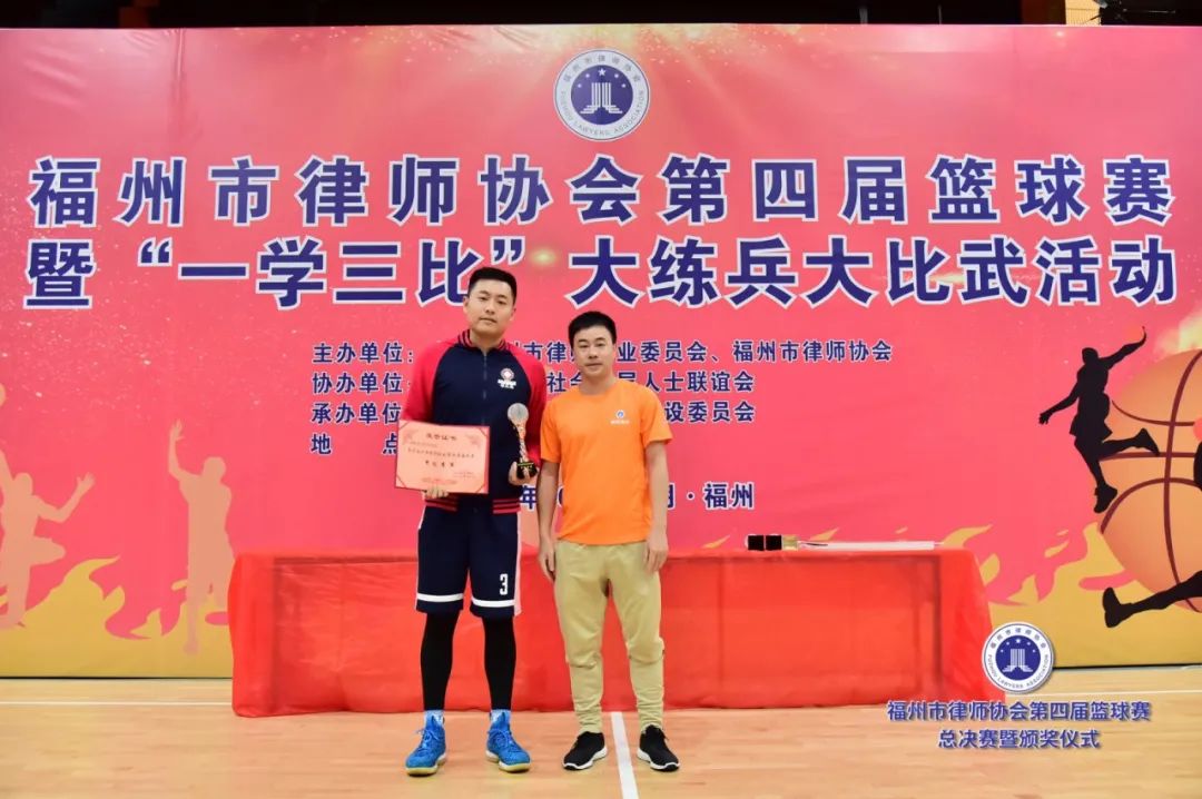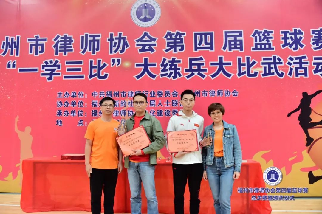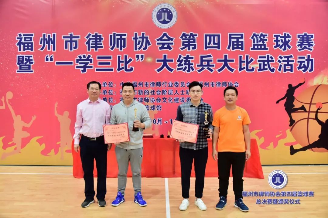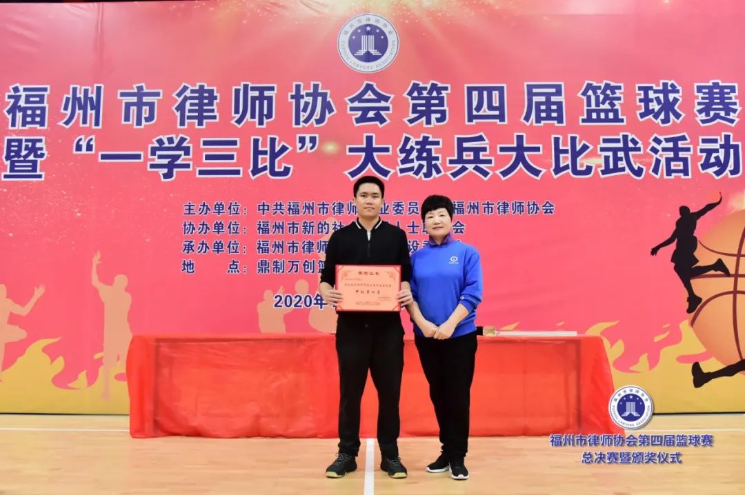 副會(huì)長(zhǎng)吳玉姜、陳立新為獲得最有價(jià)值球員獎(jiǎng)的北京大成(福州)律師事務(wù)所潘澤煒(甲級(jí))、福建閩眾律師事務(wù)所黃開(kāi)捷頒獎(jiǎng)(乙級(jí))▲