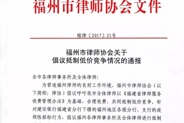 福州市律師協(xié)會關(guān)于倡議福州律師事務(wù)所及福州律師抵制低價競爭情況的通報 福州律師資訊發(fā)布者 福州律師網(wǎng)2017年10月13日福州市律師協(xié)會關(guān)于倡議福州律師事務(wù)所及福州律師抵制低價競爭情況的通報 . 福州律師網(wǎng)專業(yè)福州律師分享