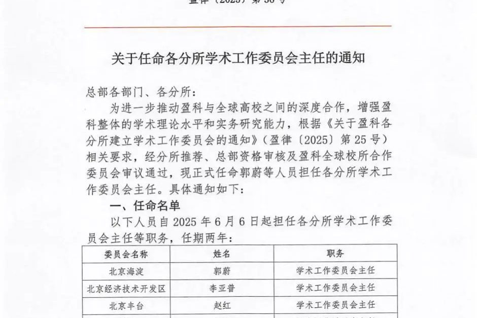 施鮮鋒律師擔(dān)任盈科福州律師事務(wù)所學(xué)術(shù)工作委員會主任 福州律師資訊發(fā)布者 福州律師網(wǎng)2025年6月13日為進一步推動盈科與全球高校之間的深度合作,增強盈科整體的學(xué)術(shù)理論水平和實務(wù)研究能力,根據(jù)《關(guān)于盈科各分所建立學(xué)術(shù)工作委員詳情
