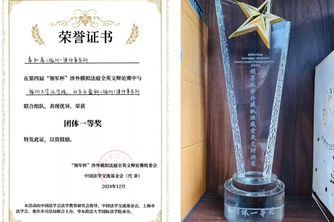 泰和泰福州律師事務(wù)所鄭暉律師在第四屆“領(lǐng)軍杯”涉外模擬法庭全英文辯論賽中榮獲佳績 福州律師資訊發(fā)布者 福州律師網(wǎng)2025年1月3日2024年12月,第四屆“領(lǐng)軍杯”涉外模擬法庭全英文辯論賽(Elite Cup Foreign-related Moot詳情