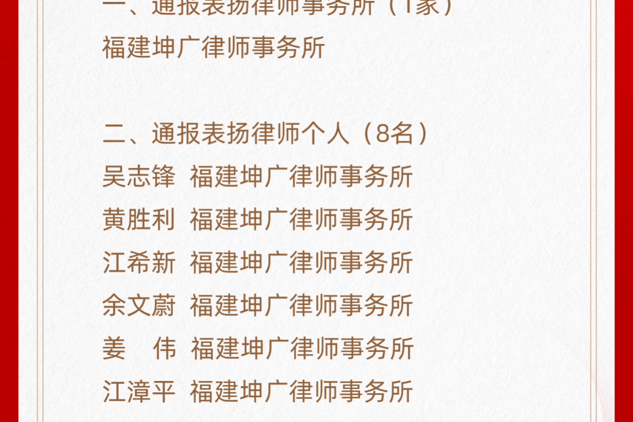 省律協(xié)通報(bào)表揚(yáng)!為福州這群勇救落水者的律師點(diǎn)贊 福州律師資訊發(fā)布者 福州律師網(wǎng)2025年10月13日10月10日,福建省律師協(xié)會第十一屆常務(wù)理事會表決通過《福建省律師協(xié)會關(guān)于通報(bào)表揚(yáng)福建坤廣律師事務(wù)所和吳志鋒等八名律師的詳情