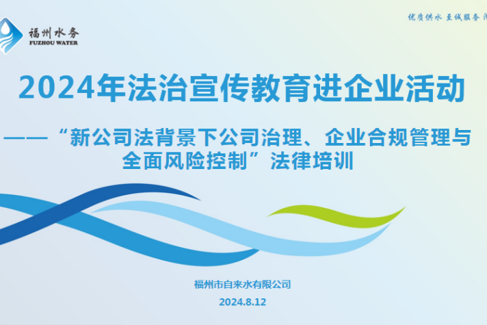 大成福州律師受邀為我市自來水公司開展新公司法背景下公司治理等專題講座 福州律師資訊發(fā)布者 福州律師網(wǎng)2024年8月21日近日,福州市自來水有限公司(以下簡稱“福州自來水公司”)開展2024年法治宣傳教育進企業(yè)暨“新公司法背景下公司治理、企業(yè)詳情