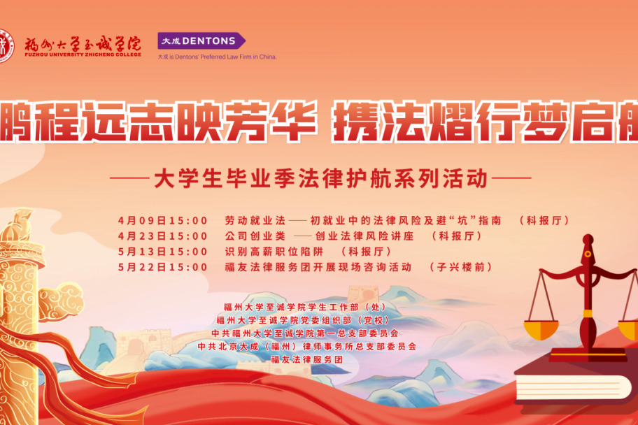 大成福州律師事務(wù)“誠成攜手”黨務(wù)共建護航畢業(yè)學(xué)子 福州律師資訊發(fā)布者 福州律師網(wǎng)2024年5月24日2024年度畢業(yè)季如期而至,北京大成(福州)律師事務(wù)所黨總支與福州大學(xué)至誠學(xué)院第一黨總支聯(lián)合策劃并開展了主題為“鵬程遠(yuǎn)志詳情