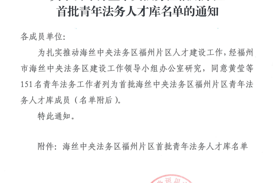 福州律師資訊:海絲中央法務(wù)區(qū)福州片區(qū)首批青年法務(wù)人才庫名單正式發(fā)布! 福州律師資訊發(fā)布者 福州律師網(wǎng)2024年4月28日為扎實推動海絲中央法務(wù)區(qū)福州片區(qū)人才建設(shè)工作,經(jīng)福州市海絲中央法務(wù)區(qū)建設(shè)工作領(lǐng)導(dǎo)小組辦公室研究,同意黃瑩等151名青年法詳情