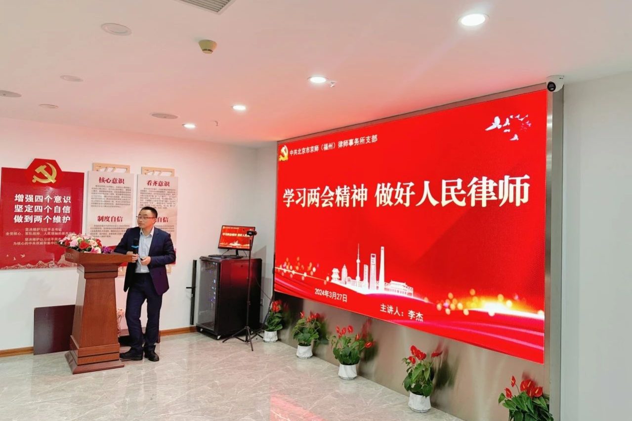 北京市京師福州律師事務(wù)所黨支部召開主題黨課 福州律師資訊發(fā)布者 福州律師網(wǎng)2024年3月28日為深入學(xué)習(xí)貫徹兩會(huì)精神,緊跟兩會(huì)動(dòng)態(tài),切實(shí)把思想和行動(dòng)統(tǒng)一到黨和國家的決策部署上來,2024年3月27日上午,北京市京師詳情